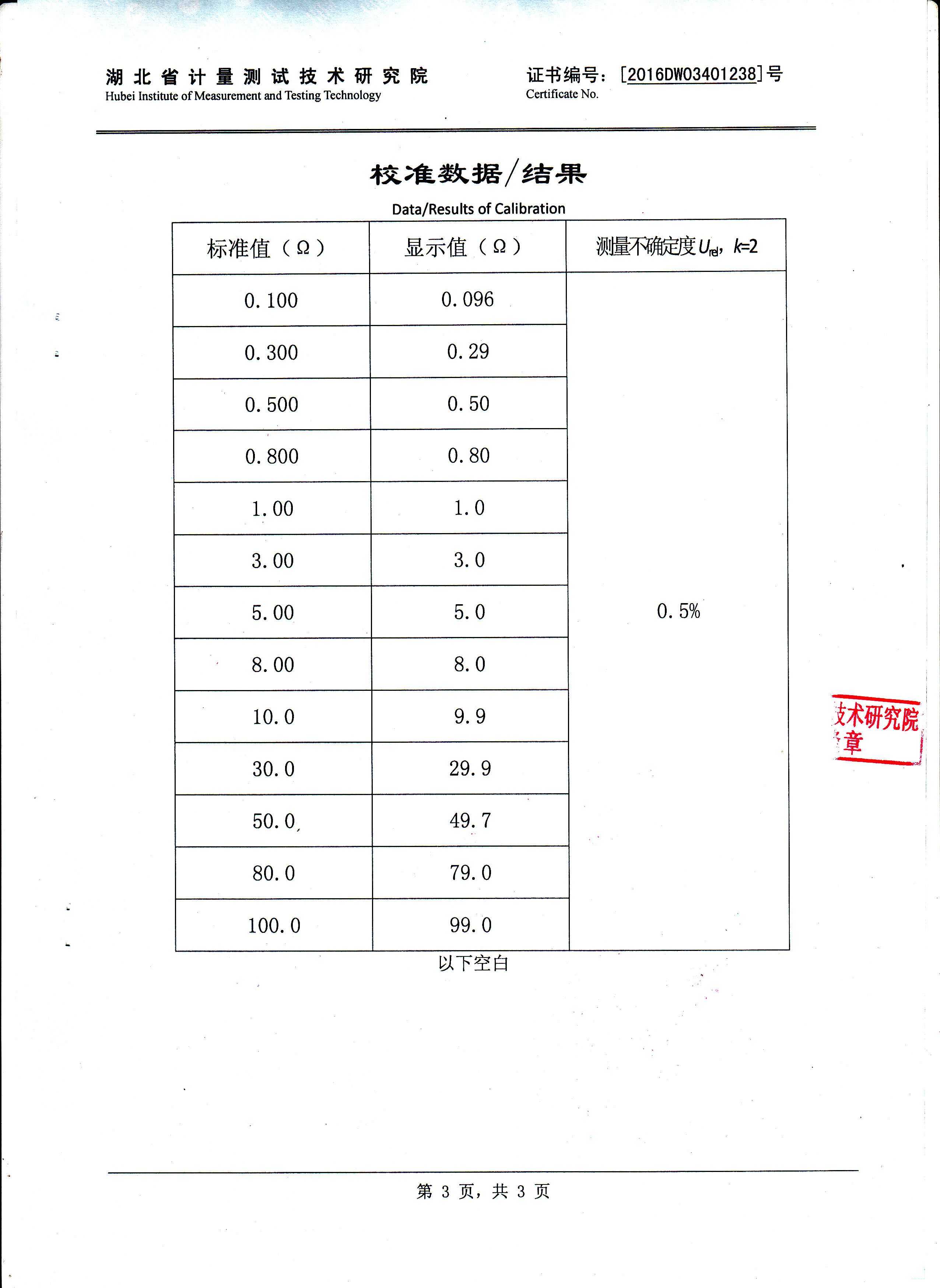 電阻分辨率 | 0.001Ω |